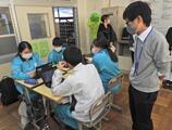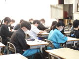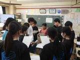 1年生の音楽では、初めて臨む合唱コンクールに向けて、クラス合唱の曲の音取りを熱心にやっていました。声を出すことにまだ戸惑いはみられるものの、良い合唱を作ろうとする意欲を感じました。