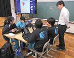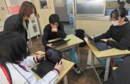 3年生の国語では、「百科事典少女」という作品の読み取りのまとめを行っていました。これもタブレットを使って自分の考えをまとめていました。
