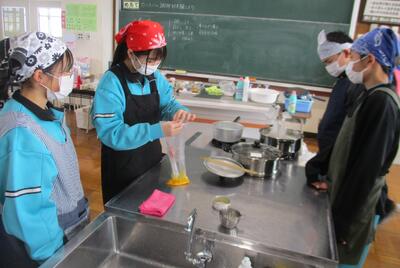 子どもたちは、先生の話をよく聞いて、協力し合って調理していました。