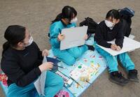 4月28日月曜日、1年生は南中学校で、2年生は佐野短期大学、3年生は植野小学校をお借りして、写生会を実施しました。