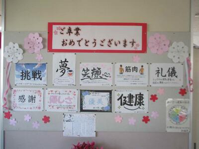 今日は1・2年生の準備によって、会場もすっかり整えられ、明日を待つばかりです。子どもたちの感謝のメッセージも掲示物でやりとりされ、今日の歌の贈り物もあって、心の準備も整ってきたと思います。思い出に残る最高の卒業式になることを願っています。