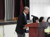代表生徒による挨拶、花束贈呈の後、職員の方々から1人ずつお言葉をいただきました。