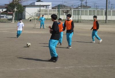 3月12日(木)、こちらは体育の授業の様子です。男子はソフトボールでした。ペアになり、キャッチボールをし、試合の準備をしました。