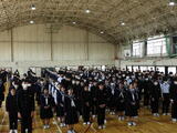 表彰式、修了式を行い、春休みの過ごし方についての話を聞きました。体育館に集まった生徒たちは、表彰されている人や話している人に体を向け、この1年間の成長を感じる態度で式に参加していました。